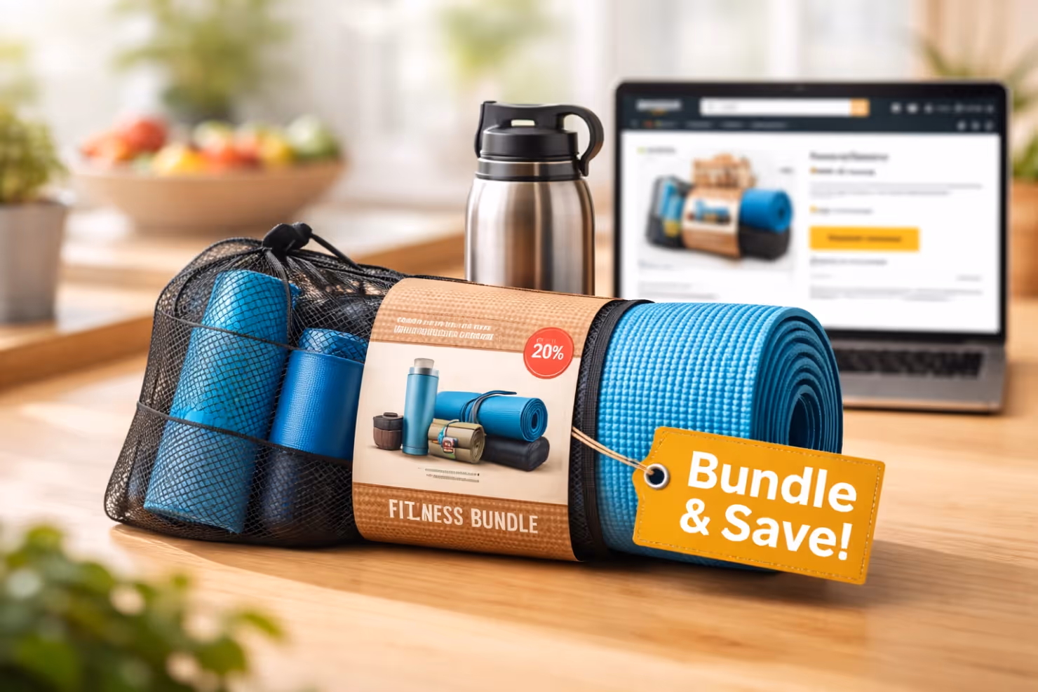 When you combine products, it is one of the quickest ways to add 25-35% on a customer's total spend while offering more value. Maybe a customer is looking at a yoga mat; just a few more dollars and they can also get a yoga mat carrying case, yoga blocks, and straps.